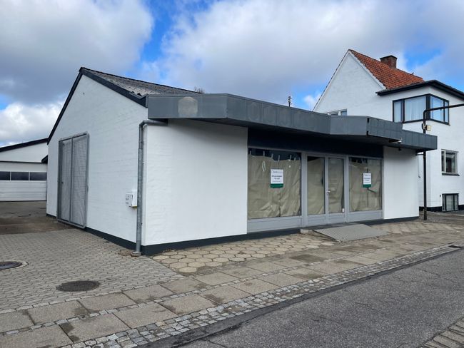 1. sal indeholder kontor, 3 gode rum, depotrum, garderobe, opholdsrum, 2 toiletter og gangareal. Der er 160 kvm. i hver plan i denne bygning.