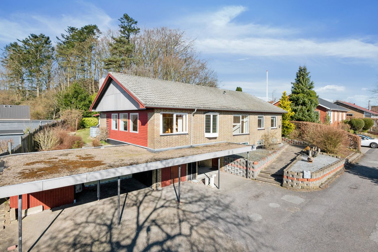 Villaen henvender sig til den store familie, hvor der sættes pris på god plads, idet der er en virkelig god og anvendelig kælder. Boligen er bygget ind i skrånende grund.