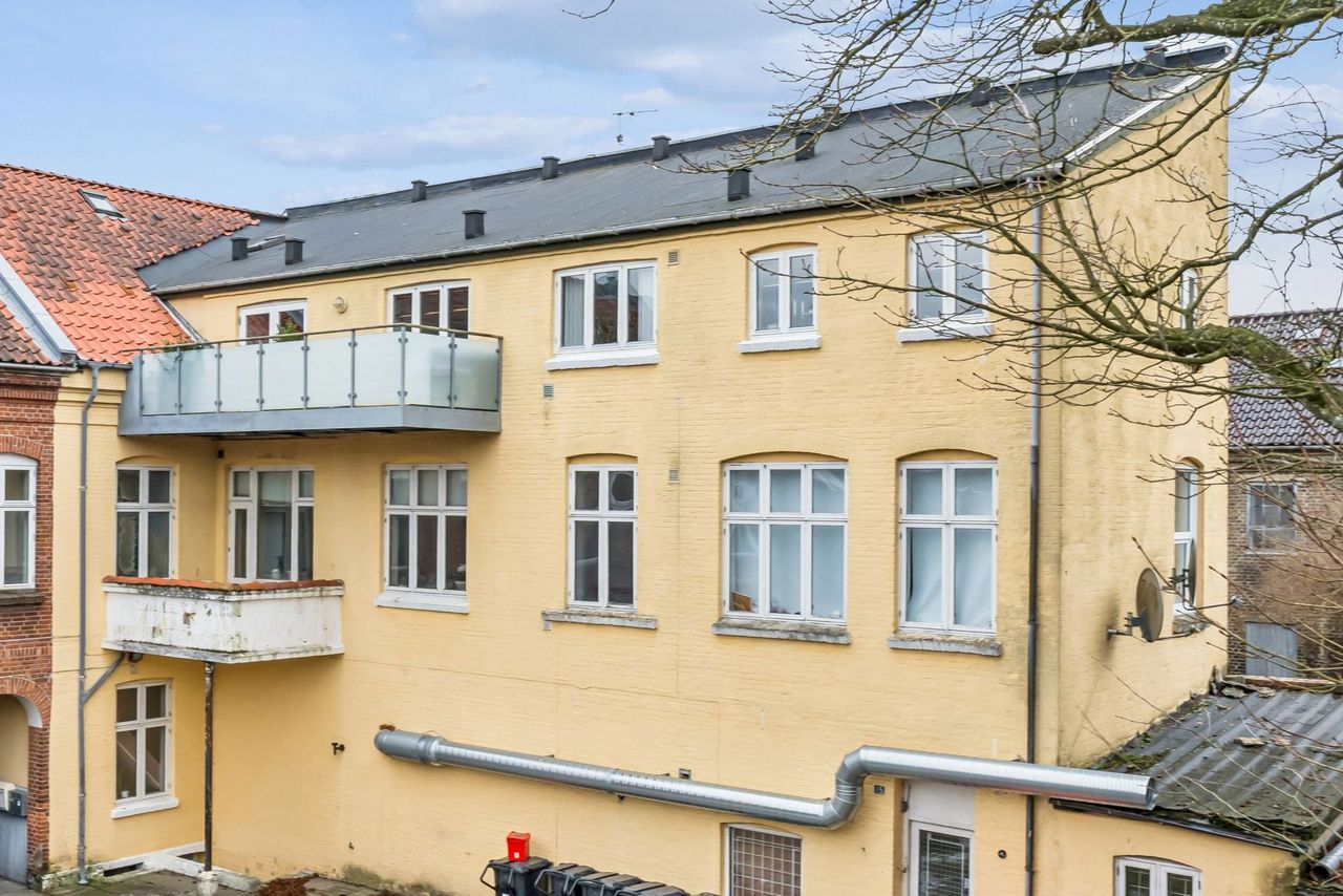 Totalt restaureret ejerlejlighed i byejendom med ialt 4 stk. ejerlejligheder. Bygningen er pudset og gulmalet, der er vingetegltag og tagpap på saddeltage. Velfungerende ejerforening med god økonomi.