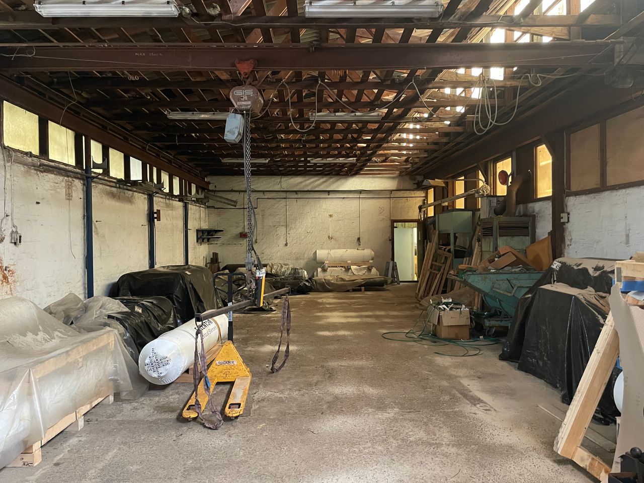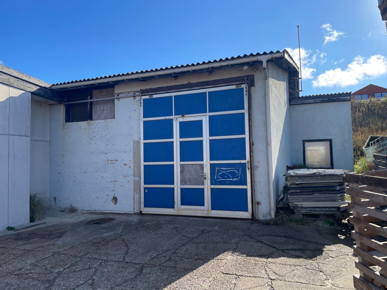 Ejendommen indeholder 2 bygninger, opført i mursten og fibercement og med dels eternittag og dels stålpladetag. Der er 2 store portåbninger. Der er højloftet lagerplads og der er stor løbekran i den ene hal. Bygningen henstår kun delvist isoleret. Der er 2 mindre og bedre isolerede rum, som har været brugt til værksteds-/testformål. Der er afdeling med kontor, toilet m.m.