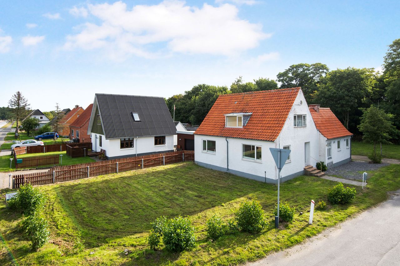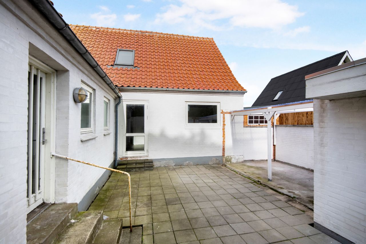 Delvis restaureret bolig, vandskuret og hvidmalet, der er rødt vingetegltag og de fleste af vinduerne er af nyere dato.