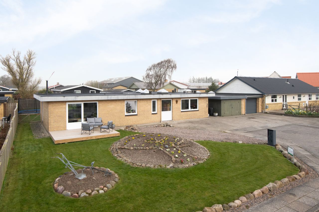 Lukket have, hovedsageligt henlagt i græs, omkranset af stakit. Forhave med diverse stensætninger omkring bede m.m. Flisebelagt terrasse mod syd-vest og træbeklædt terrasse mod syd-øst, så man kan nyde solen både morgen, middag og eftermiddag.