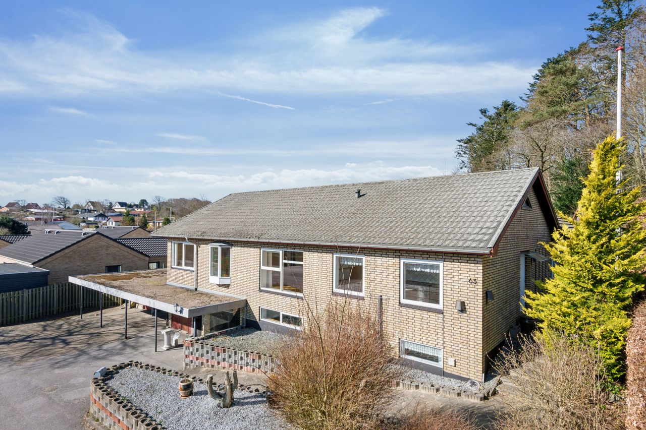 Villaen henvender sig til den store familie, hvor der sættes pris på god plads, idet der er en virkelig god og anvendelig kælder. Boligen er bygget ind i skrånende grund.